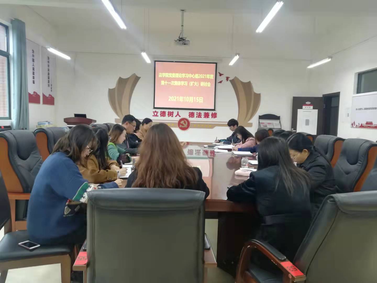 (法学院 母桂花/图文报道)2021年10月15日下午,法学院党委理论学习中心组在文德楼A8-310会议室围绕意识形态工作开展专题集中学习研讨。学院领导及全体行政人员、支部书记参加会议。学院党委书记詹伟主持会议。